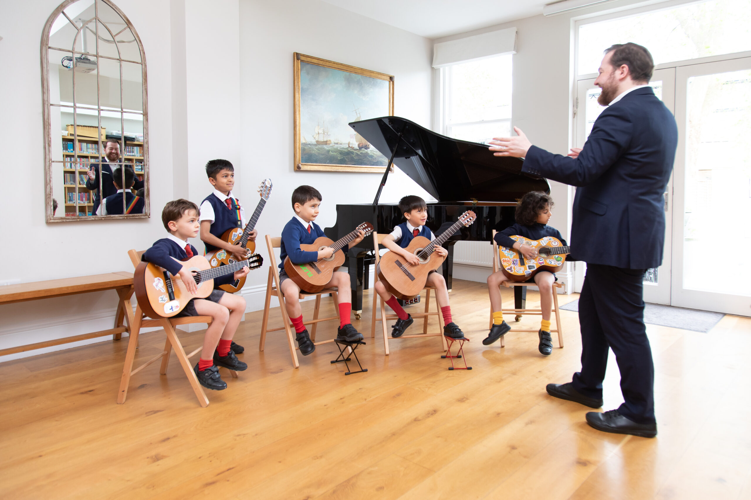 Our impressive individual music programme means that many children from Year 1 upwards take lessons with one of our specialist musicians. Children are able to choose from a huge variety of instruments including the guitar, violin, cello, piano, recorder, clarinet, flute, and saxophone. Children are prepared for ABRSM exams with aural training and rehearsals. There are ensembles for guitar and for strings, as well as two choirs which shine in the annual carol concert.
