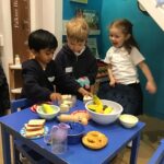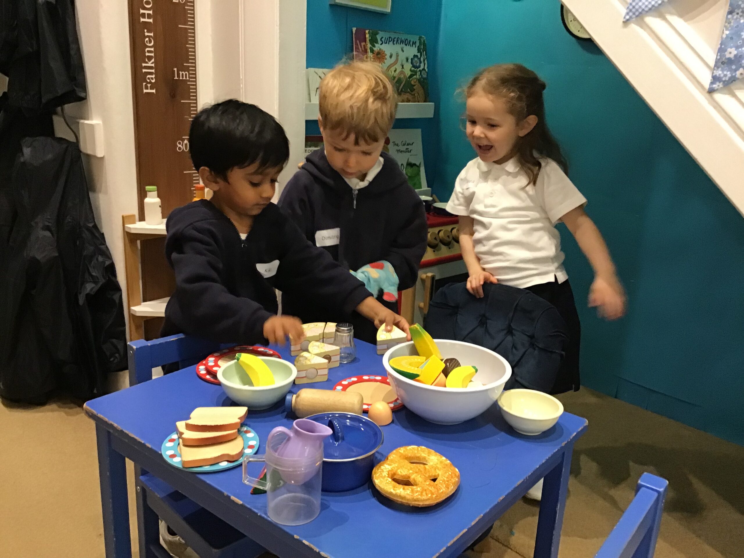 Our nook under the stairs became a kitchen where the children cooked for their friends and teachers. The laughter could be heard in both classes as the budding chefs shared their culinary treats.