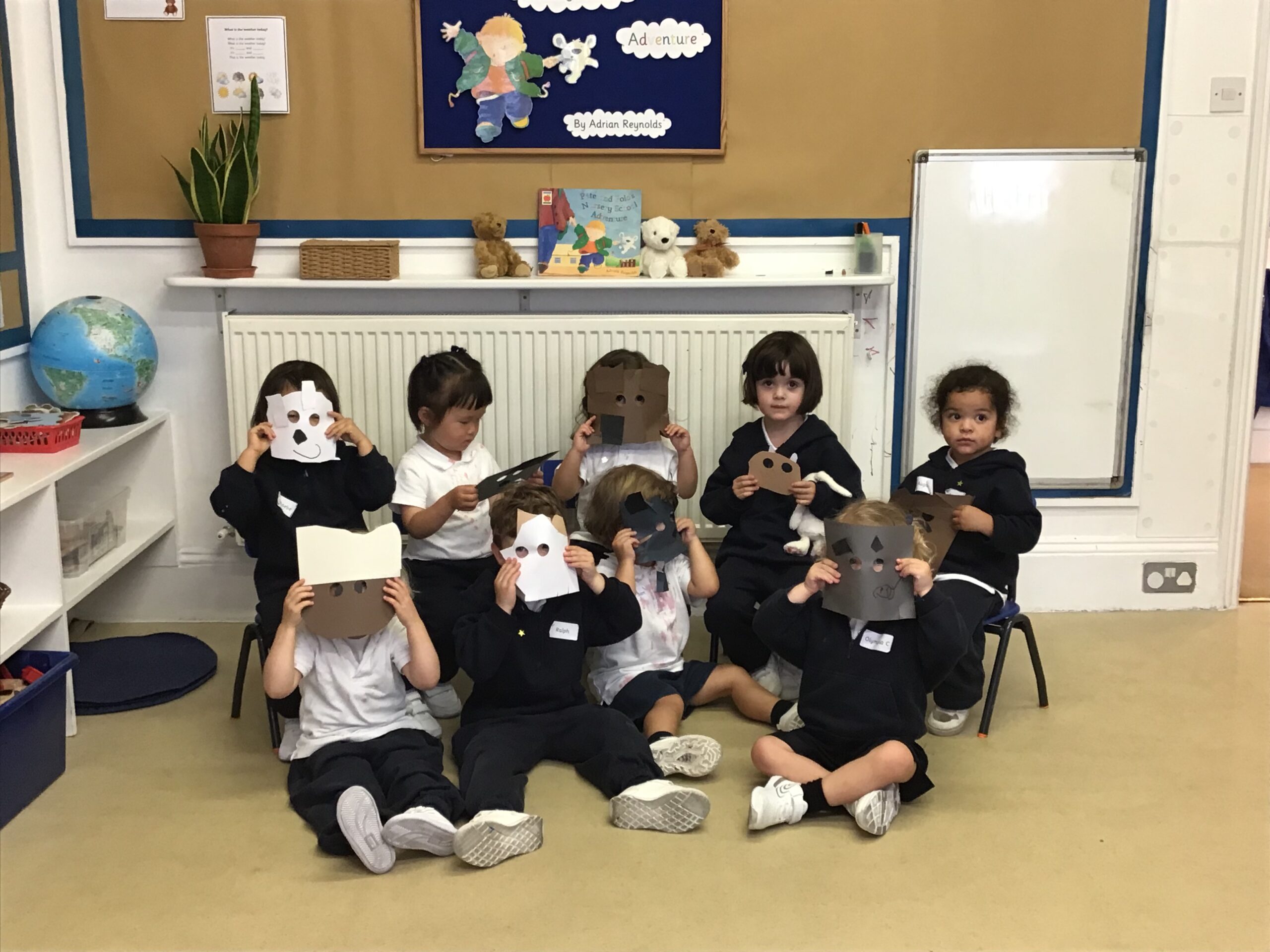 Inspired by the much-loved book ‘Pete and Polo’s Nursery School Adventure’, by Adrian Reynolds, everyone made a teddy bear mask to take home.